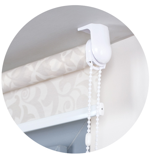 - Uchwyty roletki (wysokość 4,5 cm) wykonane są z PVC. Dostępne kolory uchwytów i łańcuszków to: