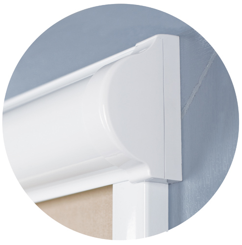 - Dzięki specjalnie skonstruowanym prowadnicom oraz kasetce, roletkę montuje się poza obrysem światła szyby, co pozwala na zamontowanie jej również na oknach lub drzwiach balkonowych ze szprosem.
