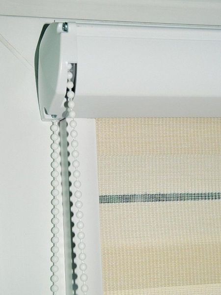 Roletka wyposażona jest w mechanizm łańcuszkowy z hamulcem umożliwiający zatrzymanie materiału na dowolnej wysokości.