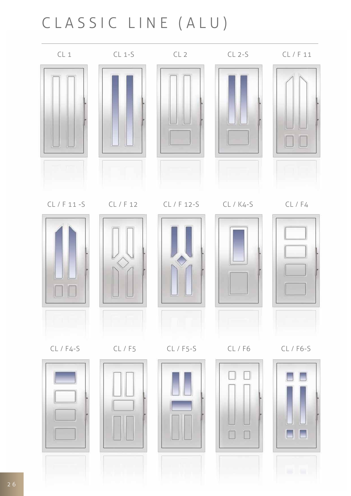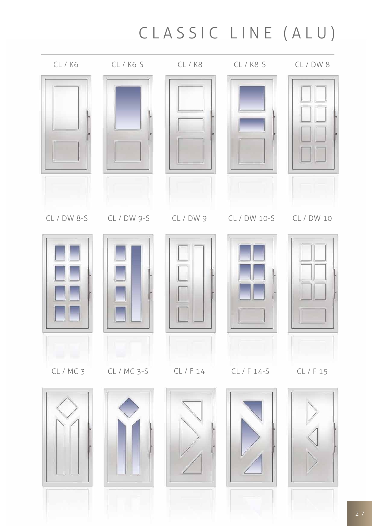 Jest to grupa wyjątkowych wypełnień pod względem użytego materiału, występujących w wersji oszklonej lub nieoszklonej. Charakteryzują się dodatkową ramą aluminiową, która kształtuje wzór oraz stanowi element utrzymujący szybę. Technologia ta pozwala na ewentualną wymianę szyby, jeśli zaistnieje taka potrzeba. Wypełnienia idealnie komponują się klasyczną, elegancką architekturą.