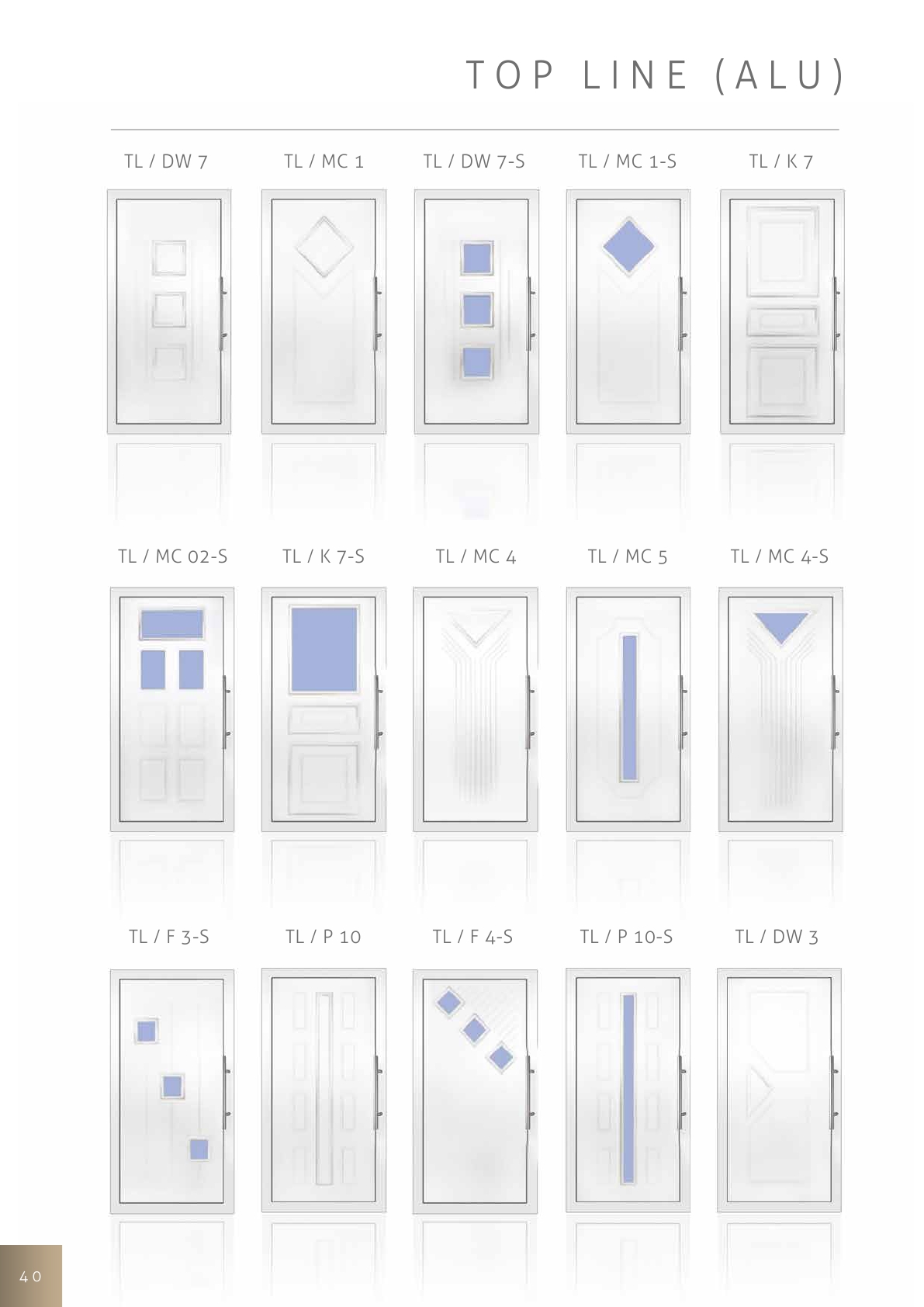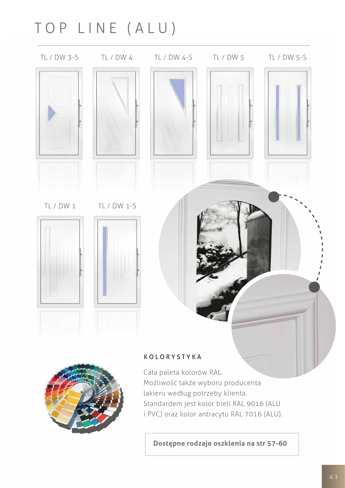 Wypełnienia drzwiowe tej serii stanowią najbardziej luksusową grupę wypełnień z naszej oferty. Poza zastosowaniem specjalnych aluminiowych ramek i elementów szklanych, znajdują się także frezowane wzory, co wymusza, użycie grubszej blachy aluminiowej nadającej wypełnieniom większą sztywność oraz wzmocnioną odporność na włamanie.